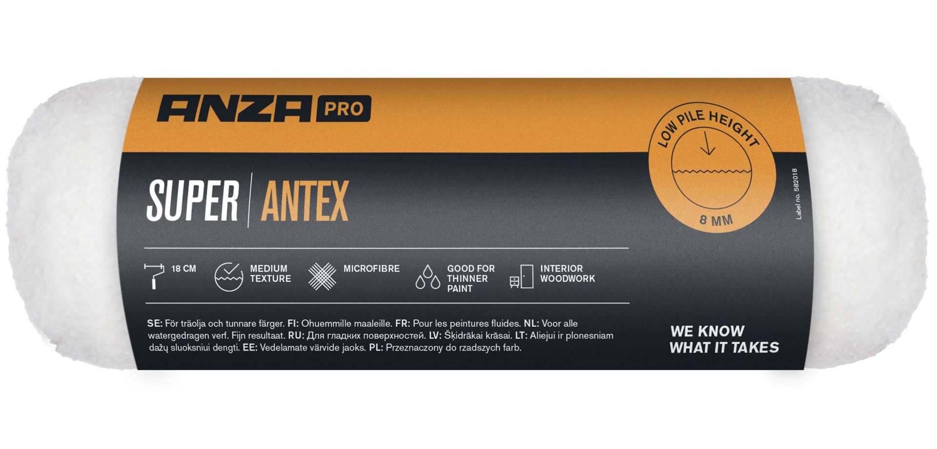 De ANZA Pro Antex muurverf- en lakroller is speciaal ontwikkeld voor het schilderen van gladde ondergronden buiten en binnen, zoals gestucte ondergronden, vlies- en scanbehang. Dankzij de microvezelvacht van 8 mm neemt de roller voldoende verf op en geeft deze gelijkmatig af. Hierdoor schildert u sneller en behaalt u een strak resultaat met een fijne structuur.