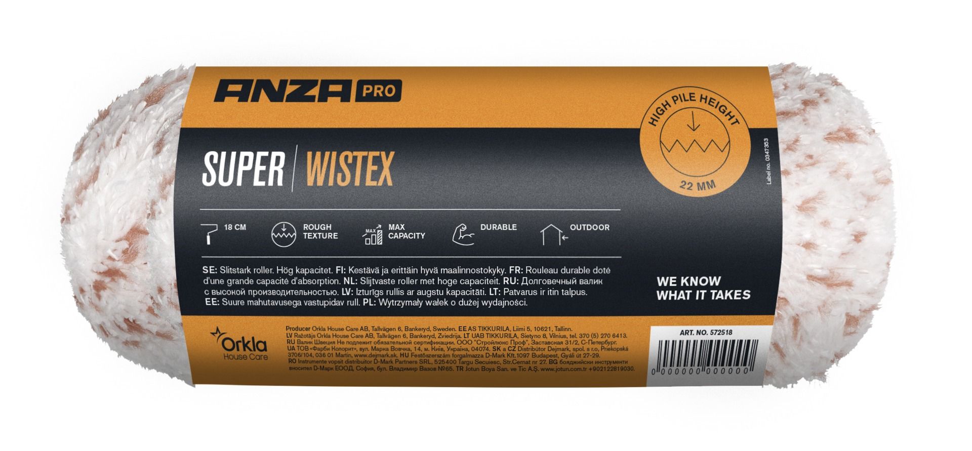 De ANZA Pro Wistex muurverfroller is speciaal ontwikkeld voor het schilderen van ruwe en sterk gestructureerde ondergronden, zoals gevels, grove structuurpleisers, spachtelputz, sierpleister en grof structuurbehang. Dankzij de zeer hoge pool van 22 mm en een open structuur neemt de roller zeer veel verf op en geeft deze gelijkmatig af. Hierdoor schildert u sneller en behaalt u een strak resultaat – zelfs op lastige oppervlakken.